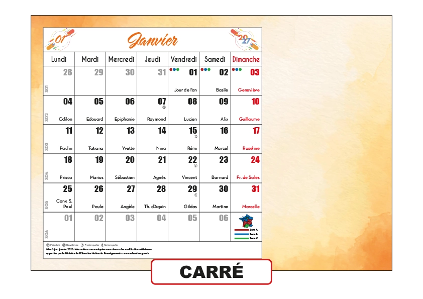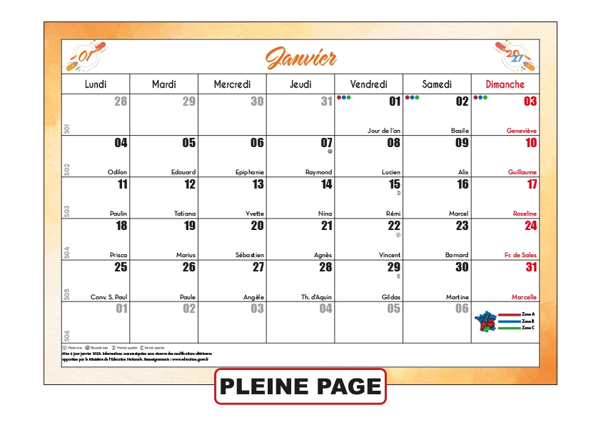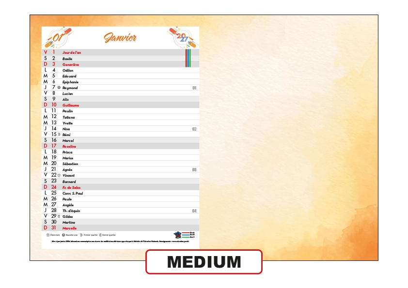 Nos calendriers standards personnalisables